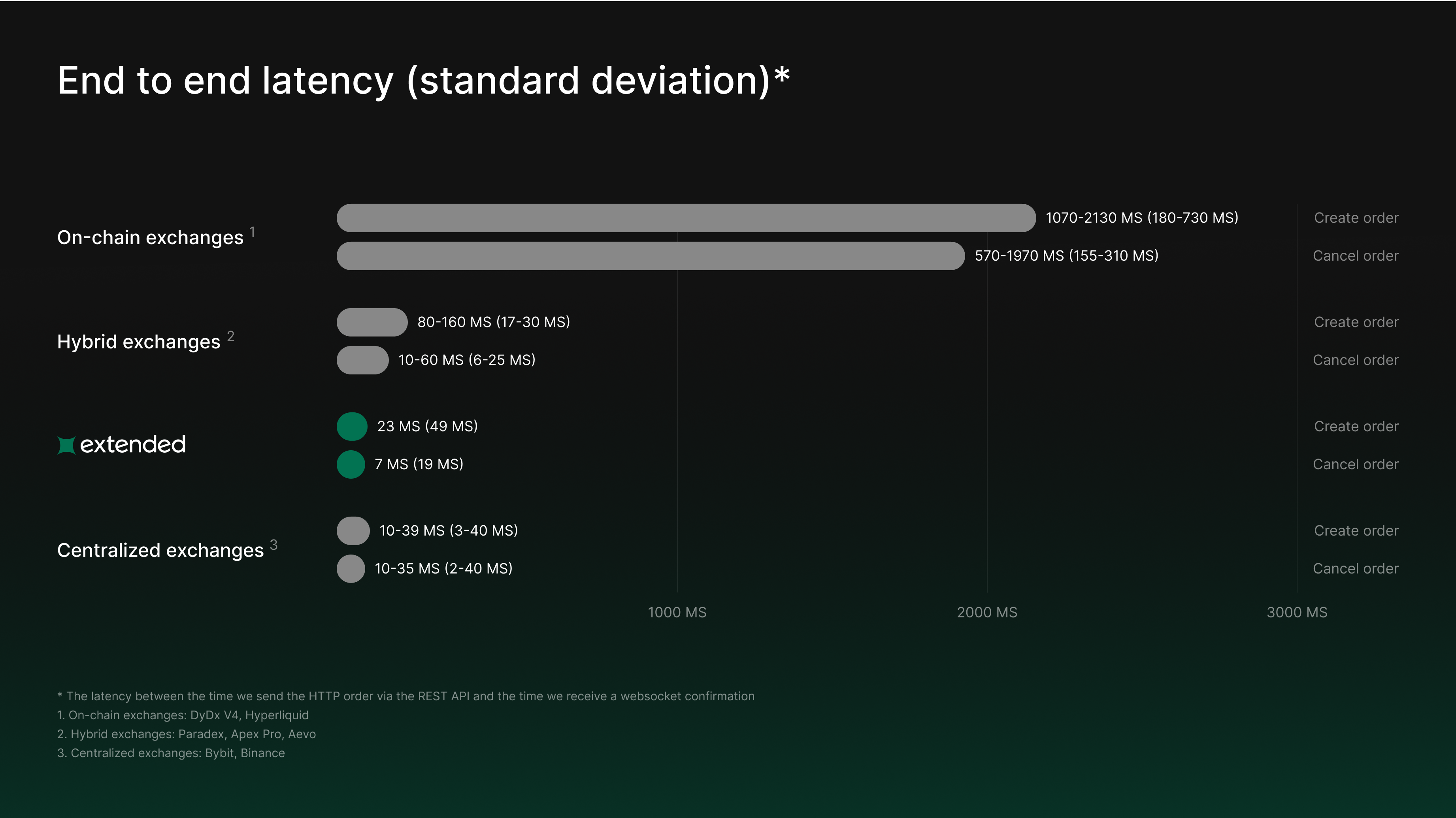 Extended delivers competitive performance, with end-to-end latency and throughput comparable to leading trading venues, enabling reliable execution even under high market activity.